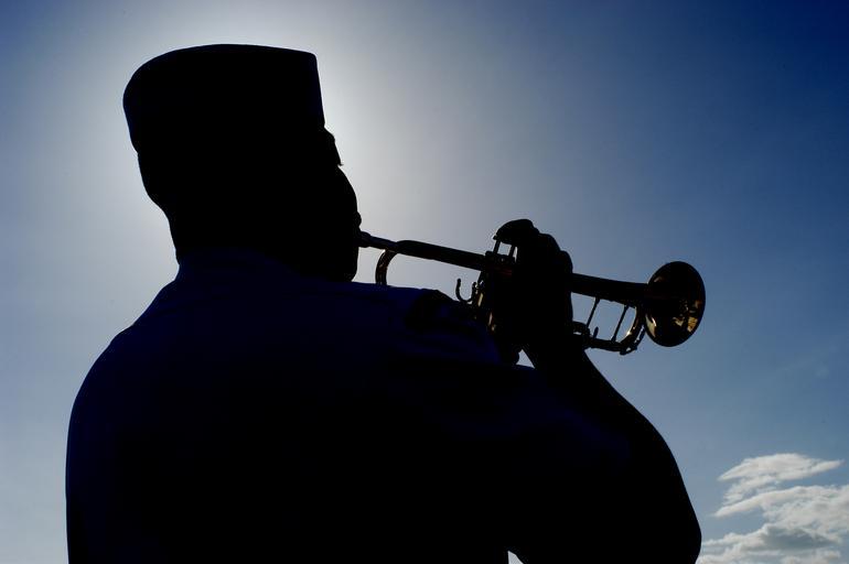 Keywords: US Navy 030521-N-8157C-025 A Sailor plays Taps to honor those killed 59 years ago in Hawaii^rsquo,s West Loch tragedy when explosions of unknown origin killed 163, injured 396, and sunk eight ships.jpg en Pearl Harbor Hawaii May 21 2003 -- A Sailor plays Taps to honor those killed 59 years ago in Hawaii s West Loch tragedy when explosions of unknown origin killed 163 injured 396 and sunk eight ships More than two dozen ammunition ships were moored in the loch preparing for an attack on Saipan when the deadly chain reaction occurred U S Navy photo by Photographer's Mate 2nd Class Dennis Cantrell RELEASED 2003-05-21 030521-N-8157C-025 Navy http //www navy mil/view_image asp id 7675 U S Navy photo by Photographer's Mate 2nd Class Dennis Cantrell PD-USGov-Military-Navy People at Pearl Harbor 2003 in Pearl Harbor Images from US Navy location Pearl Harbor Hawaii Silhouettes of male faces Taps bugle call |