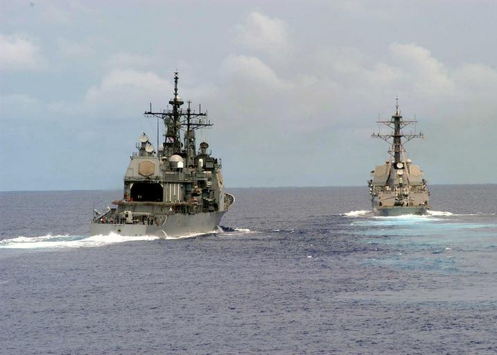 | Keywords: US Navy 030603-N-7902K-022 The guided missile cruiser USS Antietam (CG 54) approaches the port side of the guided missile frigate USS Ingraham (FFG 61) during a leap frog training exercise.jpg  en Philippine Sea Jun 03 2003 -- The guided missile cruiser USS Antietam CG 54 approaches the guided missile destroyer USS Lassen DDG 82 during a leap frog training exercise The exercise allows ship handlers to practice the approach and stabilization alongside and a breakaway in a simulated underway replenishment environment Ingraham and Antietam are part of the USS Carl Vinson CVN 70 Carrier Strike Group on deployment in the western Pacific Ocean U S Navy photo by Photographer's Mate 2nd Class Jeremie Kerns RELEASED 2003-06-03 030603-N-7902K-022 Navy http //www navy mil/view_image asp id 7843 U S Navy photo by Photographer's Mate 2nd Class Jeremie Kerns PD-USGov-Military-Navy Aboard USS Carl Vinson CVN-70 |