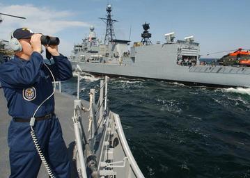 Keywords: US Navy 030608-N-4374S-020 Operations Specialist 2nd Class Matthew Cooper, assigned to the Aegis cruiser USS Vella Gulf, stands aft lookout watch during a high-line transfer with the German Bremen class frigate FGS Lubeck (F 21.jpg en At sea aboard USS Vella Gulf CG 72 Jun 8 2003 -- Operations Specialist 2nd Class Matthew Cooper assigned to the Aegis cruiser USS Vella Gulf stands aft lookout watch during a high-line transfer with the German Bremen class frigate FGS Lubeck F 214 during the annual maritime exercise Baltic Operations 2003 BALTOPS 2003 The United States and 12 other nations are participating in this year's exercise BALTOPS 2003 is intended to improve interoperability between allies and Partnership for Peace countries by conducting support operations at sea including exercises in gunnery replenishment at sea undersea warfare radar tracking mine countermeasures seamanship search and rescue maritime interdiction operations and scenarios dealing with potentially real world crises U S Navy photo by Photographer s Mate 2nd Class Michael Sandberg RELEASED 2003-06-08 030608-N-4374S-020 Navy http //www navy mil/view_image asp id 7948 U S Navy photo by Photographer s Mate 2nd Class Michael Sandberg PD-USGov-Military-Navy F214 Lübeck ship 1990 Underway replenishment BALTOPS 2003 Aboard USS Vella Gulf CG-72 Bundeswehr in 2003 |