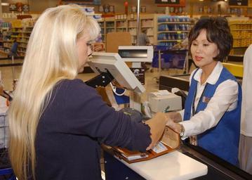 Keywords: US Navy 030620-N-7391W-007 Cashier Sue Amine assists a customer at the Pearl Harbor Commissary, run by Defense Commissary Agency's (DeCA), in the new Pearl Harbor mall complex, which opened earlier this year.jpg en Pearl Harbor Hawaii Jun 20 2003 -- Cashier Sue Amine assists a customer at the Pearl Harbor Commissary run by Defense Commissary Agency's DeCA in the new Pearl Harbor mall complex which opened earlier this year The current commissary sales floor is 29 percent larger than previous commissaries with wider aisles to maneuver shopping carts and numerous registers to speed up checkout DeCA's 22 8 million share of the Pearl Harbor mall was funded with surcharge dollars U S Navy photo by Journalist 2nd Class Jim Williams RELEASED 2003-06-20 030620-N-7391W-007 Navy http //www navy mil/view_image asp id 8196 U S Navy photo by Journalist 2nd Class Jim Williams PD-USGov-Military-Navy Mall at Pearl Harbor Defense Commissary Agency commissaries |