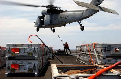 | Keywords: US Navy 030720-N-0923G-081 Aviation Ordanancemen hook up artillery storage bins to an MH-60S Knighthawk.jpg en Aboard USS Harry S Truman CVN 75 Jul 20 2003 - Aviation Ordanancemen hook up artillery storage bins to an MH-60S Knighthawk assigned to the Chargers of Helicopter Combat Support Squadron Six HC-6 during the ammo off-load aboard the nuclear powered aircraft carrier USS Harry S Truman CVN 75 Truman is currently conducting Carrier Qualifications CQ and an ammo off-load on the Eastern seaboard of the United States U S Navy photo by Photographer's Mate Airman Dustin R Gates RELEASED 2003-07-20 030720-N-0923G-081 Navy http //www navy mil/view_image asp id 11832 U S Navy photo by Photographer's Mate Airman Dustin R Gates PD-USGov-Military-Navy Aboard USS Harry S Truman CVN-75 Helicopter Combat Support Squadron 6 United States Navy |
