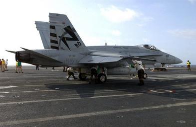 Keywords: US Navy 030724-N-0192B-007 Mechanics assigned to the Salty Dogs of Air Test and Evaluation Squadron Two Three (VX-23) perform a systems check as they ready an F-A-18 Hornet for launch from the flight deck.jpg en Atlantic Ocean Jul 24 2003 Mechanics assigned to the Salty Dogs of Air Test and Evaluation Squadron Two Three VX-23 perform a systems check as they ready an F/A-18 Hornet for launch from the flight deck aboard the nuclear powered aircraft carrier USS Ronald Reagan CVN 76 Ronald Reagan is conducting sustained flight deck operations during the ship s initial flight deck certification off the coast of Virginia U S Navy photo by Photographer's Mate 3rd Class LaMon Bradford RELEASED 2003-07-24 030724-N-0192B-007 Navy http //www navy mil/view_image asp id 11708 U S Navy photo by Photographer's Mate 3rd Class LaMon Bradford PD-USGov-Military-Navy F/A-18 Hornet launches from USS Ronald Reagan CVN-76 F/A-18E Super Hornet on flight decks Air Test and Evaluation Squadron 23 United States Navy |