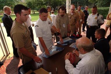 Keywords: US Navy 030811-N-2383B-112 National Football League (NFL) Hall of Fame quarterback, Terry Bradshaw and NASCAR Busch Series Driver Casey Atwood sign autographs for Lt. Nat King and Fire Controlman 2nd Class Scott Atkins while ot.jpg en Arlington Va Aug 11 2003 -- National Football League NFL Hall of Fame quarterback Terry Bradshaw and NASCAR Busch Series Driver Casey Atwood sign autographs for Lt Nat King and Fire Controlman 2nd Class Scott Atkins while others wait in line The Fitz-Bradshaw NASCAR Busch Race Team owned by Terry Bradshaw and Armando Fitz visited the Pentagon for an autograph session and to promote their Navy sponsored team U S Navy photo by Chief Photographer's Mate Johnny Bivera RELEASED 2003-08-11 030811-N-2383B-112 Navy http //www navy mil/view_image asp id 9095 U S Navy photo by Chief Photographer's Mate Johnny Bivera PD-USGov-Military-Navy Arlington County Virginia Fire Controlman Casey Atwood |