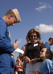 Keywords: US Navy 030905-N-4459K-011 Lt. Cmdr. Todd Abrahamson autographs a T-shirt for a child.jpg en Naval Air Station NAS Oceana Virginia Beach Va Sep 5 2003 -- Lt Cmdr Todd Abrahamson assigned to the Navy s flight demonstration team Blue Angels autographs a T-shirt for a child at the 2003 Naval Air Station NAS Oceana Regional Air Show U S Navy photo by Photographer s Mate 2nd Class Anthony M Koch RELEASED 030905-N-4459K-011 Navy http //www navy mil/view_image asp id 9404 U S Navy photo by Photographer s Mate 2nd Class Anthony M Koch PD-USGov-Military-Navy 2003 Naval Air Station Oceana Regional Air Show White T-shirts |