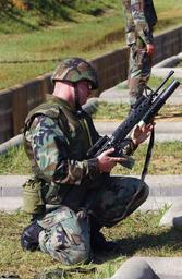 Keywords: US Navy 031013-N-9712C-003 Utilitiesman Constructionman Matthew Glover loads a chalk training round into a M203 grenade launcher attached to an M-16 Assault Rifle.jpg en Camp Hansen Okinawa Japan Oct 13 2003 -- Utilitiesman Constructionman Matthew Glover loads a chalk training round into a M203 grenade launcher attached to an M-16 Assault Rifle during range qualifications Glover assigned to Naval Mobile Construction Battalion Forty NMCB-40 which is deployed to Okinawa and is working on construction projects throughout Japan U S Navy photo by Photographer's Mate Airman John P Curtis RELEASED 2003-10-13 031013-N-9712C-003 Navy http //www navy mil/view_image asp id 9999 U S Navy photo by Photographer's Mate Airman John P Curtis PD-USGov-Military-Navy Camp Hansen Naval Mobile Construction Battalion 40 Utilitiesman M16 rifle with M203 Males with M203 Reloading firearms