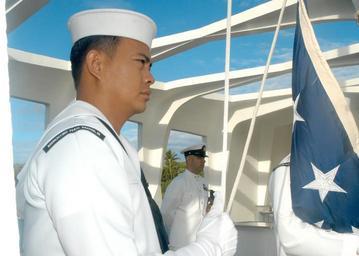 Keywords: US Navy 031204-N-7391W-047 Hospital Corpsman 1st Class Teodoro Castaneda from Naval Medical Clinic Pearl Harbor.jpg en Pearl Harbor Hawaii Dec 4 2003 -- Hospital Corpsman 1st Class Teodoro Castaneda from Naval Medical Clinic Pearl Harbor raises the national ensign during a ceremony held aboard the USS Arizona Memorial Sailors from Naval Medical Clinic Pearl Harbor planned and participated in the ceremony The flag was flown over the Arizona Memorial and then sent to Somerset County Pennsylvania where it will be flown regularly above the future Flight 93 Memorial commemorating those who perished in the United Airlines Flight 93 on September 11 2001 U S Navy photo by Journalist 2nd Class Jim Williams RELEASED 2003-12-04 031204-N-7391W-047 Navy http //www navy mil/view_image asp id 10931 U S Navy photo by Journalist 2nd Class Jim Williams PD-USGov-Military-Navy Hospital Corpsman USS Arizona Memorial interior |