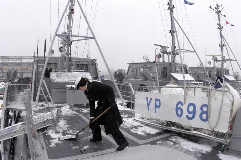 Keywords: US Navy 031206-N-0399H-002 Midshipman 4th Class Christa Stowe, from Daytona Beach, Fla., shovels snow from the weather deck of Yard Patrol Craft 698.jpg en Philadelphia Pa Dec 6 2003 -- Midshipman 4th Class Christa Stowe from Daytona Beach Fla shovels snow from the weather deck of Yard Patrol Craft 698 at Coast Guard Station Philadelphia The ship and crew are one of three Yard Patrol Crafts to make the transit from the Naval Academy in Annapolis Md to Philadelphia for the 104th playing of the Army Navy game The YPs are used to teach familiarization with water craft Basic Damage Control and underway instruction of Basic to Advanced Seamanship and Navigation Yard Patrol craft provide realistic at-sea training in navigation and seamanship for midshipmen attending the academy U S Navy photo by Photographer's Mate 1st Class Dana Howe RELEASED 2003-12-06 031206-N-0399H-002 Navy http //www navy mil/view_image asp id 10897 U S Navy photo by Photographer's Mate 1st Class Dana Howe PD-USGov-Military-Navy Images from US Navy location Philadelphia PA Yard Patrol boats |