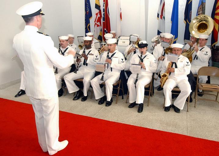 Keywords: US Navy 031207-N-7391W-053 Sailors assigned to the Pacific Fleet Band provided music during the 62nd anniversary of the attack on Pearl Harbor.jpg en Pearl Harbor Hawaii Dec 7 2003 - Sailors assigned to the Pacific Fleet Band provided music during the 62nd anniversary of the attack on Pearl Harbor at the USS Arizona Memorial During this years commemoration 250 distinguished visitors and veterans are expected to attended the ceremonies that also include the guided-missile destroyer USS O Kane DDG 77 rendering honors more than 40 wreath presentations a 21-gun salute and the playing of taps The Guest Speaker was Commander U S Pacific Command Adm Thomas B Fargo U S Navy photo by Journalist 2nd Class Jim Williams RELEASED 2003-12-07 031207-N-7391W-053 Navy http //www navy mil/view_image asp id 11590 U S Navy photo PD-USGov-Military-Navy USS Arizona Memorial interior Aboard USS O'Kane DDG-77 |