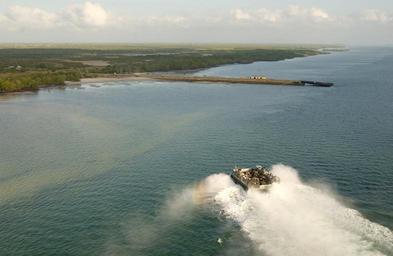 | Keywords: US Navy 040105-N-3236B-006 An aerial view of a Landing Craft Air Cushion (LCAC 63) heading towards Manda Bay Kenyan Naval training area in Kenya, Africa.jpg en Kenya Africa Jan 5 2004 - An aerial view of a Landing Craft Air Cushion LCAC 63 heading towards Manda Bay Kenyan Naval training area in Kenya Africa Manda Bay Naval Base is the primary site for bilateral training where Sailors and Marines of the 13th Marine Expeditionary Unit MEU Special Operations Capable SOC are participating in Exercise Edged Mallet 04 Edged Mallet is a two-week exercise designed to strengthen military-to-military relationships increase interoperability and familiarize U S personnel with the environmental and operational characteristics of Kenya while demonstrating amphibious capabilities Additionally Edged Mallet features Humanitarian Assistance Operations and bilateral combined arms training with Kenyan Armed Forces Edged Mallet involved more than 1 800 U S Sailors and Marines and is part of an ongoing series of U S - Kenya military activities that refine promote and maintain the operational readiness of participating forces while supporting and maintaining understandings between Kenyan and U S personnel U S Navy photo by Photographer s Mate 1st Class Ted Banks RELEASED 2004-01-05 040105-N-3236B-006 Navy http //www navy mil/view_image asp id 11617 U S Navy photo by Photographer s Mate 1st Class Ted Banks PD-USGov-Military-Navy Boats in Kenya LCAC-63 ship 1993 Edged Mallet 2004 |