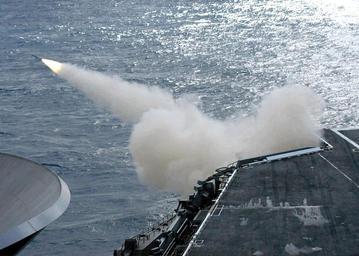 | Keywords: US Navy 040121-N-6653C-002 A RIM-7M NATO Sea Sparrow surface-to-air missile is test fired off the fantail aboard USS Washington (CVN 73).jpg en Atlantic Ocean Jan 21 2004 A RIM-7M NATO Sea Sparrow surface-to-air missile is test fired off the fantail aboard USS George Washington CVN 73 The missile is propelled by a solid-fuel rocket motor and travels at supersonic speeds The Navy uses the Sea Sparrow aboard ships as a surface-to-air anti-missile defensive weapon The Norfolk Va -based nuclear powered aircraft carrier is on a scheduled deployment U S Navy photo by Photographer s Mate 3rd Class Sheryl M Campbell RELEASED 2004-01-21 040121-N-6653C-002 Navy http //www navy mil/view_image asp id 11521 U S Navy photo by Photographer s Mate 3rd Class Sheryl M Campbell PD-USGov-Military-Navy Launches of RIM-7 Sea Sparrow missiles Aboard USS George Washington CVN-73 |