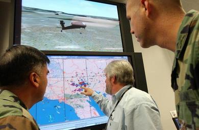 Keywords: US Navy 040124-N-6027E-002 Mr. Randy Kubic, center, shows Air Force Col. Richard Davila, left, and Army Maj. Matt Spruill, the Joint Semi-automated Forces Ground Truth picture.jpg en U S Joint Force Command USJFCOM Suffolk Va Jan 24 2004 Mr Randy Kubic center shows Air Force Col Richard Davila left and Army Maj Matt Spruill the Joint Semi-automated Forces Ground Truth picture during an exercise for the Western Range Joint National Training Capability JNTC Horizontal Training Event 04-1 The exercise involves all four military services across the United States and is designed to improve joint training at the tactical level U S Navy photo by Chief Journalist Kevin Elliott RELEASED 040124-N-6027E-002 Navy http //www navy mil/view_image asp id 11561 U S Navy photo by Chief Journalist Kevin Elliott PD-USGov-Military-Navy Unified Combatant Commands Suffolk Virginia Military exercises |