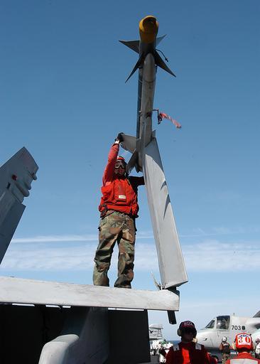| Keywords: US Navy 040217-N-3986D-034 Aviation Ordnanceman Airman Gary Alford of Paris, Texas, checks an inert AIM-9 Sidewinder missile, used for training and is identified by its blue color.jpg en Red Sea Feb 17 2004 Aviation Ordnanceman Airman Gary Alford of Paris Texas checks an inert AIM-9 Sidewinder missile used for training and is identified by its blue color The missile is mounted on an F/A-18C Hornet assigned to the Knighthawks of Strike Fighter Squadron One Three Six VFA-136 aboard USS George Washington CVN 73 The Norfolk Va - based nuclear powered aircraft carrier is on a scheduled deployment U S Navy photo by Photographer s Mate Airman Jessica Davis RELEASED 2004-02-17 040217-N-3986D-034 Navy http //www navy mil/view_image asp id 11973 U S Navy photo by Photographer s Mate Airman Jessica Davis PD-USGov-Military-Navy AIM-9 Sidewinder Aviation Ordnanceman Aboard USS George Washington CVN-73 Strike Fighter Squadron 136 United States Navy |