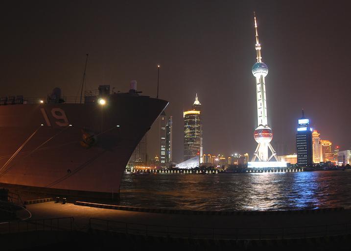 | Keywords: US Navy 040227-N-8955H-037 During a port visit to Shanghai, China, the Seventh Fleet command and control ship USS Blue Ridge (LCC 19) is moored to the Gaoyang Road pier for the first time since March 2001.jpg  en Shanghai China Feb 27 2004 During a port visit to Shanghai China the Seventh Fleet command and control ship USS Blue Ridge LCC 19 is moored to the Gaoyang Road pier for the first time since March 2001 Shanghai called Hu for short is a bustling metropolis located at the mouth of the Yangtze River Connected with Jiangsu and Zhejiang provincese in the west the city is exposed to the East China Sea in the east With a total area of 6341 square kilometers about 2 448 square miles and a population of more than 13 million Shanghai is China s largest city Sailors and Marines assigned to the Blue Ridge take in an opportunity to experience the local culture and interact with their counterparts from the People s Liberation Army Navy Blue Ridge is forward deployed to Yokosuka Japan U S Navy photo by Photographer's Mate 1st Class Novia E Harrington RELEASED 2004-02-27 040227-N-8955H-037 Navy http //www navy mil/view_image asp id 12213 U S Navy photo by Photographer's Mate 1st Class Novia E Harrington PD-USGov-Military-Navy Ships at night Buildings and structures in Shanghai at night Aboard USS Blue Ridge LCC-19 |