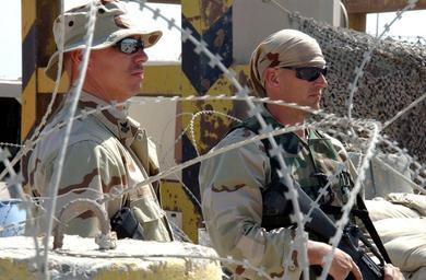 Keywords: US Navy 040229-N-0743B-020 Culinary Specialist 1st Class Dennis Lintz, left, and Boatswain^rsquo,s Mate 3rd Class Mark Yarbrough keep watch at an entry control point at the port of Ash-Shu'aibah, Kuwait.jpg en Mina Ash-Shu'aibah Kuwait Feb 29 2004 - Culinary Specialist 1st Class Dennis Lintz left and Boatswain s Mate 3rd Class Mark Yarbrough keep watch at an entry control point at the port of Ash-Shu'aibah Kuwait Mobile Inshore Undersea Warfare Units Two Zero Six MIUW 206 and One One Zero MIUW 110 provide security for the harbor and equipment in it The harbor is utilized by Military Sealift Command MSC which is the transportation provider for the Department of Defense with the responsibility of providing strategic sealift and ocean transportation for all military forces overseas U S Navy photo by Journalist 3rd Class Eric L Beauregard RELEASED 2004-02-29 040229-N-0743B-020 Navy http //www navy mil/view_image asp id 12889 U S Navy photo by Journalist 3rd Class Eric L Beauregard PD-USGov-Military-Navy United States Navy in Ash Shuaybah Kuwait Culinary specialist United States Navy |