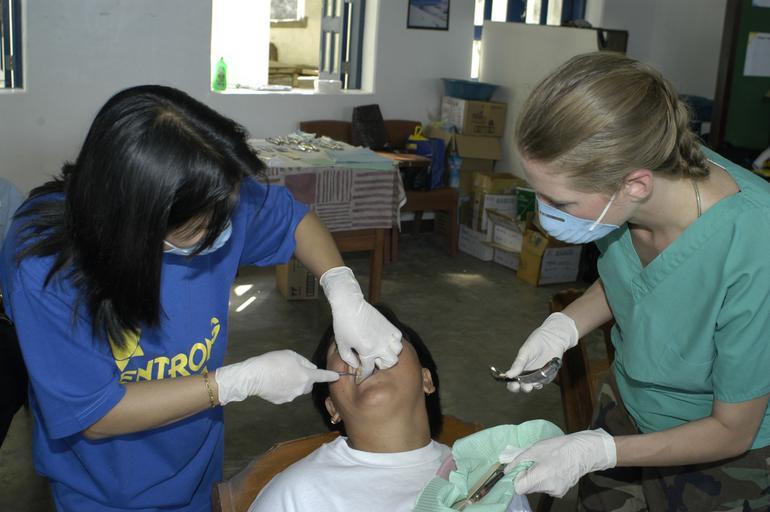 MAKE A MEME View Large Image Navy 040303-N-4958O-004 Filipino dentist Irma Villeta, left, and Naval Reserve Dental Technician 1st Class Aimee Arnold, treat local patients during the medical assistance phase of Exercise Balikatan 2004.jpg en Ivana Republic of the ...