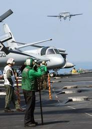 | Keywords: US Navy 040306-N-4374S-014 An E-2C Hawkeye makes its final approach to the aircraft carrier John F. Kennedy (CV 67) after completing a training mission.jpg en Atlantic Ocean Mar 6 2004 An E-2C Hawkeye assigned to the Tigertails of Carrier Airborne Early Warning Squadron One Two Five VAW-125 makes its final approach to the aircraft carrier John F Kennedy CV 67 after completing a training mission The Kennedy Carrier Strike Group CSG and Carrier Air Wing One Seven CVW-17 are currently conducting Composite Training Unit Exercises COMPTUEX while preparing for future deployment U S Navy photo by Photographer s Mate 2nd Class Michael Sandberg RELEASED 2004-03-06 040306-N-4374S-014 Navy http //www navy mil/view_image asp id 12492 U S Navy photo by Photographer s Mate 2nd Class Michael Sandberg PD-USGov-Military-Navy Images from US Navy location ATLANTIC OCEAN Northrop Grumman E-2C Hawkeye aircraft carrier landings Airborne Early Warning Squadron 125 United States Navy |