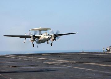 | Keywords: US Navy 040306-N-4374S-015 An E-2C Hawkeye makes its final approach to the aircraft carrier John F. Kennedy (CV 67) after completing a training mission.jpg en Atlantic Ocean Mar 6 2004 An E-2C Hawkeye assigned to the Tigertails of Carrier Airborne Early Warning Squadron One Two Five VAW-125 makes its final approach to the aircraft carrier John F Kennedy CV 67 after completing a training mission The Kennedy Carrier Strike Group CSG and Carrier Air Wing One Seven CVW-17 are currently conducting Composite Training Unit Exercises COMPTUEX while preparing for future deployment U S Navy photo by Photographer s Mate 2nd Class Michael Sandberg RELEASED 2004-03-06 040306-N-4374S-015 Navy http //www navy mil/view_image asp id 12493 U S Navy photo by Photographer s Mate 2nd Class Michael Sandberg PD-USGov-Military-Navy Northrop Grumman E-2C Hawkeye aircraft carrier landings Airborne Early Warning Squadron 125 United States Navy |