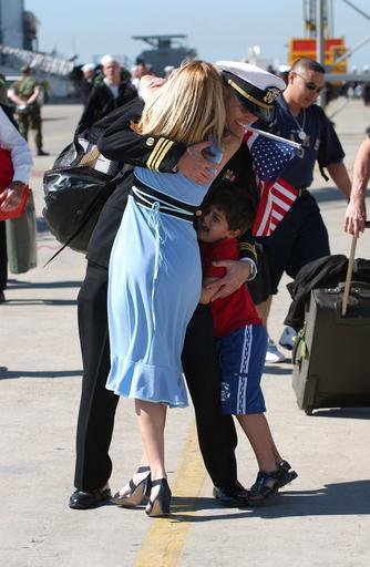 Keywords: US Navy 040309-N-3236B-001 A Navy Lt. Cdr. is welcomed home today as five San Diego-based ships assigned to Expeditionary Strike Group One (ESG-1) return from a six-and-a-half month deployment in support of the global war on te.jpg en San Diego Mar 9 2004 - A Navy Lt Cdr is welcomed home today as five San Diego-based ships assigned to Expeditionary Strike Group One ESG-1 return from a month deployment in support of the global war on terrorism ESG-1 consists of the amphibious assault ship USS Peleliu LHA 5 the amphibious transport dock USS Ogden LPD 5 the guided missile destroyer USS Decatur DDG 73 the guided missile Frigate USS Jarrett FFG 33 and the amphibious dock landing ship USS Germantown LSD 42 ESG-1 is capable of operating in shallow narrow waterways or the open ocean day and night in all weather conditions in support of marine or joint forces operating near-shore or deep inland U S Navy photo by Photographer's Mate 1st Class Ted Banks RELEASED 2004-03-09 040309-N-3236B-001 Navy http //www navy mil/view_image asp id 12553 U S Navy photo by Photographer's Mate 1st Class Ted Banks PD-USGov-Military-Navy Naval ship arrivals to Naval Base San Diego Aboard USS Germantown LSD-42 Hugs involving the military Military people of the United States with children |