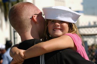 Keywords: US Navy 040309-N-3236B-003 A Sailor is welcomed home today as five San Diego-based ships assigned to Expeditionary Strike Group One (ESG-1) return from a six-and-a-half month deployment in support of the global war on terrorism.jpg en San Diego Mar 9 2004 - A Sailor is welcomed home today as five San Diego-based ships assigned to Expeditionary Strike Group One ESG-1 return from a month deployment in support of the global war on terrorism ESG-1 consists of the amphibious assault ship USS Peleliu LHA 5 the amphibious transport dock USS Ogden LPD 5 the guided missile destroyer USS Decatur DDG 73 the guided missile Frigate USS Jarrett FFG 33 and the amphibious dock landing ship USS Germantown LSD 42 ESG-1 is capable of operating in shallow narrow waterways or the open ocean day and night in all weather conditions in support of marine or joint forces operating near-shore or deep inland U S Navy photo by Photographer's Mate 1st Class Ted Banks RELEASED 2004-03-09 040309-N-3236B-003 Navy http //www navy mil/view_image asp id 12554 U S Navy photo by Photographer's Mate 1st Class Ted Banks PD-USGov-Military-Navy Naval ship arrivals to Naval Base San Diego Aboard USS Germantown LSD-42 War on Terrorism Hugs involving the military Military people of the United States with children |