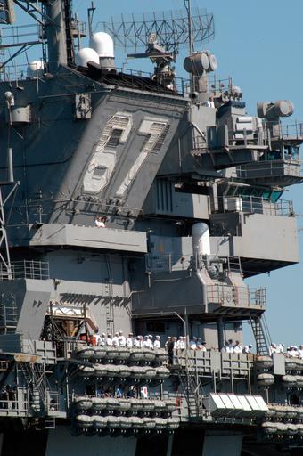 | Keywords: US Navy 040317-N-6528K-140 USS John F. Kennedy (CV 67) arrives at Naval Air Station Pensacola, Fla., for a four-day port visit after completing a Composite Training Unit Exercise (COMTUEX) in the Gulf of Mexico.jpg en Pensacola Fla Mar 17 2004 USS John F Kennedy CV 67 arrives at Naval Air Station Pensacola Fla for a four-day port visit after completing a Composite Training Unit Exercise COMTUEX in the Gulf of Mexico COMPTUEX is an intermediate level exercise designed to forge the strike group into a cohesive fighting team and is a critical step in pre-deployment training During COMPTUEX more than a dozen ships and Carrier Air Wing Seventeen CVW-17 embarked on Kennedy conducted war game exercises using training ranges along the East Coast of the U S and the Gulf of Mexico The exercise took advantage of existing ranges under the Navy s comprehensive Training Resource Strategy TRS These ranges offer training facilities and realistic simulations better preparing U S Navy ships and Sailors to participate in the Global War on Terrorism U S Navy photo by Larry Kachelhofer RELEASED Mar 17 2004 040317-N-6528K-140 Navy http //www navy mil/view_image asp id 12775 U S Navy photo by Larry Kachelhofer PD-USGov-Military-Navy Aboard USS John F Kennedy CV-67 Naval Air Station Pensacola |