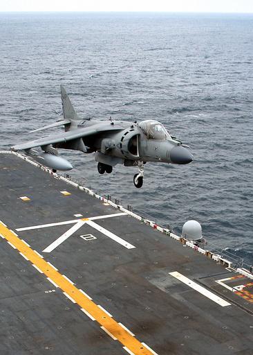 | Keywords: US Navy 040317-N-2651J-002 An AV-8B Harrier jump jet assigned to the ^ldquo,Bulldogs^rdquo, of Marine Attack Squadron Two Two Three (VMA-223) makes it's final approach to the amphibious assault ship USS Saipan (LHA 2).jpg en Virginia Coast Mar 17 2004 - An AV-8B Harrier jump jet assigned to the Bulldogs of Marine Attack Squadron Two Two Three VMA-223 makes it's final approach to the amphibious assault ship USS Saipan LHA 2 during flight deck certification Saipan is currently underway in preparation for the ship's upcoming scheduled deployment U S Navy photo by Photographer's Mate Airman Apprentice Gary L Johnson III RELEASED 2004-03-17 040317-N-2651J-002 Navy http //www navy mil/view_image asp id 12787 U S Navy photo by Photographer's Mate Airman Apprentice Gary L Johnson III PD-USGov-Military-Navy Images from US Navy location Virginia Coast Marine Attack Squadron 223 Aboard USS Saipan LHA-2 AV-8B Harrier II US Marine Corps in flight |