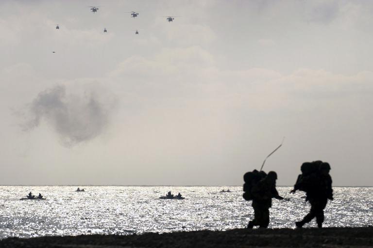 | Keywords: US Navy 040326-F-0193C-030 Republic of Korea Marines charge the beach at the beginning of a simulated amphibious assault on Pohang Beach, Korea.jpg en Pohang Beach Korea Mar 26 2004 - Republic of Korea Marines charge the beach at the beginning of a simulated amphibious assault on Pohang Beach Korea during Reception Staging Onward Movement and Integration and Foal Eagle 2004 The exercise is an annual U S and South Korea exercise tailored to evaluate command capabilities to receive U S Forces from outside Korea while teaching coaching and mentoring exercise participants U S Air Force photo by Staff Sgt D Myles Cullen RELEASED 2004-03-26 040326-F-0193C-030 Navy http //www navy mil/view_image asp id 13039 U S Navy photo PD-USGov-Military-Navy Images from US Navy location Pohang Beach Korea Foal Eagle 2004 |