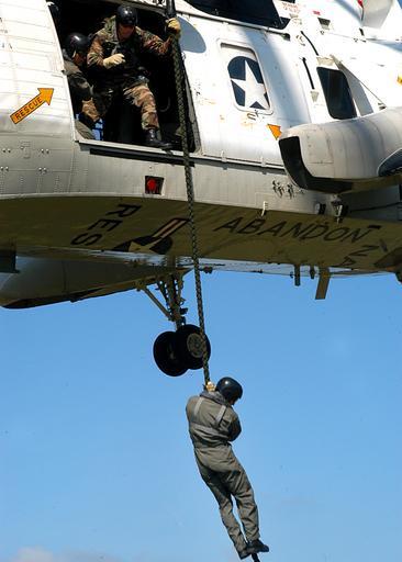 | Keywords: US Navy 040408-N-8921O-012 Aircrew Survival Equipmentman 2nd Class John Mann, of San Diego, Calif., fast ropes out of a UH-3H Sea King helicopter.jpg en Oak Harbor Wash Apr 08 2004 - Aircrew Survival Equipmentman 2nd Class John Mann of San Diego Calif fast ropes out of a UH-3H Sea King helicopter Petty Officer Mann is assigned to Explosive Ordnance Disposal Mobile Unit Eleven EODMU-11 The unit is conducting fast rope and rappelling exercises to help prepare the team for combat situations U S Navy photo by Photographer's Mate Airman Chris Otsen RELEASED 2004-04-08 040408-N-8921O-012 Navy http //www navy mil/view_image asp id 13172 U S Navy photo by Photographer's Mate Airman Chris Otsen PD-USGov-Military-Navy Naval Air Station Whidbey Island United States Navy Explosive Ordnance Disposal Aircrew Survival Equipmentman Fast roping UH-3H Sea King Explosive Ordnance Disposal Mobile Unit 11 |