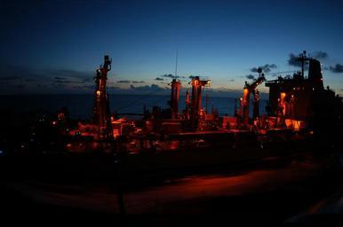 Keywords: US Navy 040414-N-5781F-001 The Military Sealift Command (MSC) underway replenishment oiler USNS Yukon (T-AO 202) conducts a replenishment at sea (RAS) evolution with the aircraft carrier USS Kitty Hawk (CV 63).jpg en Coast of Singapore Apr 14 2004 - The Military Sealift Command MSC underway replenishment oiler USNS Yukon T-AO 202 conducts a replenishment at sea RAS evolution with the aircraft carrier USS Kitty Hawk CV 63 off the coast of Singapore A RAS provides the ability to maintain operations at sea for extended periods of time without having to pull into a port for supplies or fuel Currently underway in the 7th Fleet Area of Responsibility AOR Kitty Hawk is the United State's only forward deployed aircraft carrier homeported in Yokosuka Japan U S Navy photo by Photographer's Mate Airman Bo J Flannigan RELEASED 2004-04-14 040414-N-5781F-001 Navy http //www navy mil/view_image asp id 13329 U S Navy photo by Photographer's Mate Airman Bo J Flannigan PD-USGov-Military-Navy Images from US Navy location Coast of Singapore Underway replenishment Aboard USNS Yukon T-AO-202 Military activities at night |