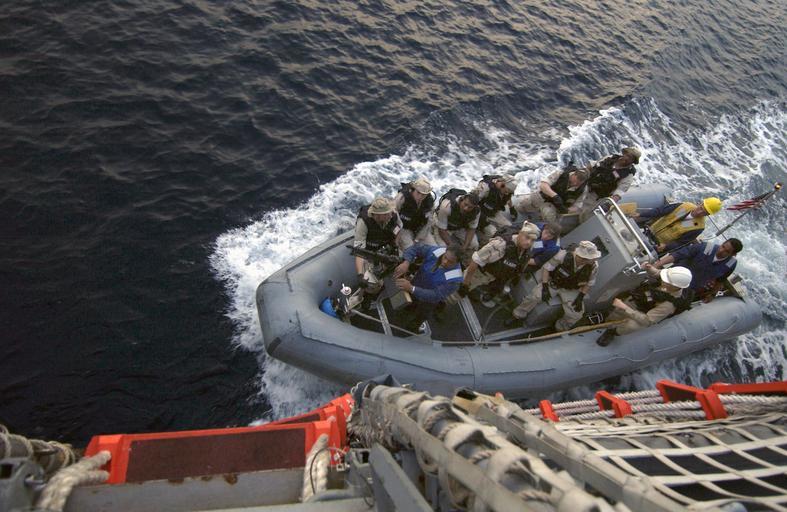 Keywords: US Navy 040423-N-5319A-013 The Visit Board Search and Seizure team (VBSS) assigned to USS Bulkeley (DDG 84) returns in a Rigid Hull Inflatable Boat (RHIB).jpg en At sea with USS Bulkeley DDG 84 Apr 23 2004 - The Visit Board Search and Seizure team VBSS assigned to USS Bulkeley DDG 84 returns in a Rigid Hull Inflatable Boat RHIB after conducting a Maritime Interdiction Operation MIO while participating in exercises aimed at fighting the global war on terrorism The Norfolk Va based Arleigh Burke class guided missile destroyer is on a scheduled deployment in support of Operation Iraqi Freedom U S Navy photo by Photographer s Mate 1st Class Brien Aho RELEASED 2004-04-23 040423-N-5319A-013 Navy http //www navy mil/view_image asp id 13621 U S Navy photo by Photographer s Mate 1st Class Brien Aho PD-USGov-Military-Navy USS Bulkeley DDG-84 Rigid-hulled inflatable boats of US Navy Visit Board Search and Seizure M60 machine gun |