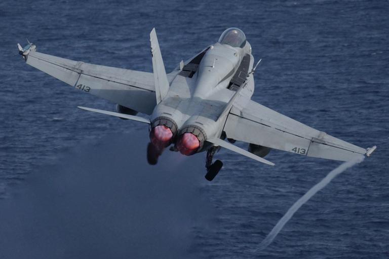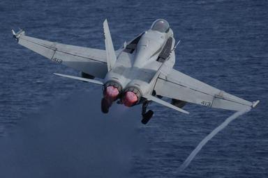 | Keywords: US Navy 040606-N-4308O-027 An F-A 18 Hornet assigned to the Gunslingers of Fighter Attack Squadron One Zero Five (VFA-105) launches from the bow of USS Harry S. Truman (CVN 75).jpg en Atlantic Ocean Jun 06 2004 - An F/A 18 Hornet assigned to the Gunslingers of Fighter Attack Squadron One Zero Five VFA-105 launches from the bow of USS Harry S Truman CVN 75 Truman is one of seven aircraft carriers involved in the Summer Pulse 2004 Exercise Summer Pulse 2004 is the simultaneous deployment of seven aircraft carrier strike groups CSGs demonstrating the ability of the Navy to provide credible combat power across the globe in five theaters with other U S allied and coalition military forces Summer Pulse is the Navy first deployment under its new Fleet Response Plan FRP U S Navy photo by Photographer's Mate Airman Ryan O'Connor RELEASED For more information go to <a href http //www cffc navy mil/summerpulse04 htm Target _BLANK >www cffc navy mil/summerpulse04 htm</a> 2004-06-06 040606-N-4308O-027 Navy http //www navy mil/view_image asp id 14721 U S Navy photo by Photographer's Mate Airman Ryan O'Connor PD-USGov-Military-Navy Aboard USS Harry S Truman CVN-75 Strike Fighter Squadron 105 United States Navy |
