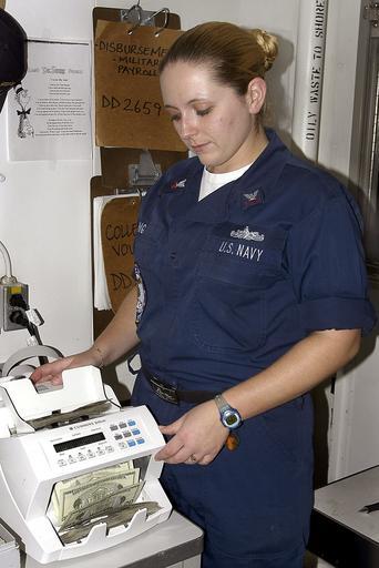 MAKE A MEME View Large Image Navy 040616-N-4973G-031 Disbursing Clerk 2nd Class Danielle King of Newport News, Va., electronically counts money in the disbursing office aboard USS John C. Stennis (CVN 74).jpg en Northern Pacific Ocean June 16 2004 - Disbursing Clerk ...