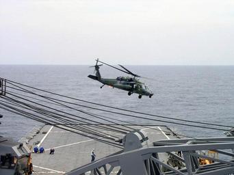 | Keywords: US Navy 040624-N-4104L-008 A Royal Brunei Sikorsky S-70 Battle Hawk helicopter takes off from the flight deck of the amphibious dock landing ship USS Fort McHenry (LSD 43).jpg en South China Sea June 24 2004 - A Royal Brunei Sikorsky S-70 Battle Hawk helicopter takes off from the flight deck of the amphibious dock landing ship USS Fort McHenry LSD 43 Brunei is conducting flight deck training exercises with Fort McHenry during the Brunei phase of exercise Cooperation Afloat Readiness and Training CARAT CARAT is a regularly scheduled series of bilateral military training exercises with several Southeast Asia nations designed to enhance the interoperability of the respective sea services U S Navy photo by Chief Journalist Melinda Larson RELEASED 2004-06-24 040624-N-4104L-008 Navy http //www navy mil/view_image asp id 15445 U S Navy photo by Chief Journalist Melinda Larson PD-USGov-Military-Navy Aboard USS Fort McHenry LSD-43 |
