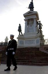 | Keywords: US Navy 040627-N-8148A-013 A Chilean Sailor guards the Monument to the Heroes of the Pacific War.jpg en Valparaiso Chile June 27 2004 - A Chilean Sailor guards the Monument to the Heroes of the Pacific War which stands opposite of the Armada de Chile building Both locations were tour stops for crew members aboard USS Ronald Reagan CVN 76 The sightseeing tour from Valparaiso to Santiago capital city of Chile is sponsored and organized by Ronald Reagan s Morale Welfare Recreation MWR Reagan is underway circumnavigating South America in transit to her new homeport of San Diego Calif while participating in exercises supporting Summer Pulse 2004 Summer Pulse 2004 is the simultaneous deployment of seven aircraft strike groups CSGs demonstrating the ability of the Navy to provide credible combat across the globe in five theaters with other U S allied and coalition military forces Summer Pulse is the Navy s first deployment under its new Fleet Response Plan FRP U S Navy photo by Photographer's Mate 3rd Class Kitt Amaritnant RELEASED 2004-06-27 040627-N-8148A-013 Navy http //www navy mil/view_image asp id 15717 U S Navy photo by Photographer's Mate 3rd Class Kitt Amaritnant PD-USGov-Military-Navy Monumento a los héroes de Iquique |