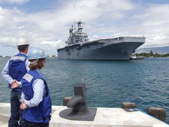 Keywords: US Navy 040628-N-3925A-005 Sailors aboard the amphibious assault ship USS Tarawa (LHA 1) man the rails as the ship pulls into Naval Station Pearl Harbor.jpg en Naval Station Pearl Harbor Hawaii June 28 2004 - Sailors aboard the amphibious assault ship USS Tarawa LHA 1 man the rails as the ship pulls into Naval Station Pearl Harbor Tarawa is in Pearl Harbor to take part in Rim of the Pacific RIMPAC 2004 RIMPAC is the largest international maritime exercise in the waters around the Hawaiian Islands This years exercise includes seven participating nations; Australia Canada Chile Japan South Korea the United Kingdom and the United States RIMPAC is intended to enhance the tactical proficiency of participating units in a wide array of combined operations at sea while enhancing stability in the Pacific Rim region U S Navy photo by Photographer's Mate 2nd Class Grant P Ammon RELEASED For more information go to <a href http //www cpf navy mil/RIMPAC2004 Target _BLANK >http //www cpf navy mil/RIMPAC2004</a>/ 2004-06-28 040628-N-3925A-005 Navy http //www navy mil/view_image asp id 15567 U S Navy photo by Photographer's Mate 2nd Class Grant P Ammon PD-USGov-Military-Navy USS Tarawa LHA-1 at Pearl Harbor RIMPAC 2004 General views of USS Tarawa LHA-1 Manning the rail in the United States Navy |