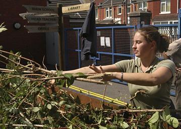 | Keywords: US Navy 040705-N-6187M-043 Crew members from USS Enterprise help clear undergrowth at a school during a community project in Portsmouth, England.jpg en Portsmouth England July 5 2004 - Boatswain's Mate 3rd Class Amy Sheprow assigned to the guided missile cruiser USS Gettysburg CG 64 helps clear undergrowth from the garden of College Park Infant School during a volunteer Community Relations COMREL activity in Portsmouth England Gettysburg Sailors enjoyed four-days in Portsmouth The ship is underway in the Atlantic Ocean as part of the USS Enterprise CVN 65 carrier strike group CSG in support of Summer Pulse '04 Summer Pulse 2004 is the simultaneous deployment of seven carrier strike groups CSGs demonstrating the ability of the Navy to provide credible combat across the globe in five theaters with other U S allied and coalition military forces Summer Pulse is the Navy's first deployment under its new Fleet Response Plan FRP U S Navy Photo by Photographer's Mate 2nd Class Lance H Mayhew Jr RELEASED For more information go to <a href http //www cffc navy mil/summerpulse04 htm Target _BLANK >http //www cffc navy mil/summerpulse04 htm</a> 2004-07-05 040705-N-6187M-043 Navy http //www navy mil/view_image asp id 16050 U S Navy Photo by Photographer's Mate 2nd Class Lance H Mayhew Jr PD-USGov-Military-Navy Images from US Navy location Portsmouth England Aboard USS Gettysburg CG-64 |