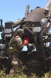 | Keywords: US Navy 040713-N-5055W-230 Lance Cpl. Ramon Gallego, assigned to First Battalion, Twelfth Marine Regiment, loads a charge round.jpg en Pacific Missile Range Barking Sands Hawaii July 13 2004 - Lance Cpl Ramon Gallego assigned to First Battalion Twelfth Marine Regiment loads a charge round behind the ammunition round in preparation for the next firing of the Howitzer 150 gun The Twelfth Marine Regiment is participating in exercise Rim of the Pacific RIMPAC 2004 RIMPAC is the largest international maritime exercise in the waters around the Hawaiian Islands This years exercise includes seven participating nations; Australia Canada Chile Japan South Korea the United Kingdom and the United States RIMPAC is intended to enhance the tactical proficiency of participating units in a wide array of combined operations at sea while enhancing stability in the Pacific Rim region U S Navy photo by Photographer's Mate 1st Class Jane West RELEASED For more information go to <a href http //www cpf navy mil/RIMPAC2004 Target _BLANK >www cpf navy mil/RIMPAC2004</a>/ 2004-07-13 040713-N-5055W-230 Navy http //www navy mil/view_image asp id 16262 U S Navy photo by Photographer's Mate 1st Class Jane West PD-USGov-Military-Navy Pacific Missile Range Facility Barking Sands RIMPAC 2004 Loading weapons M198 howitzer |