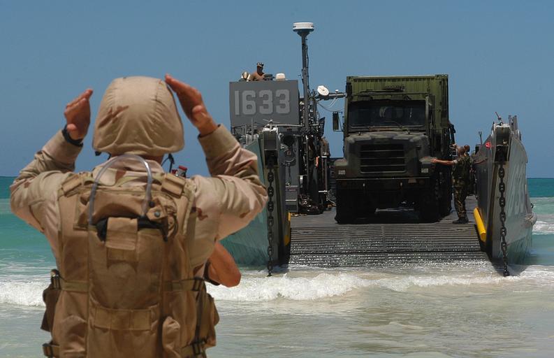 | Keywords: US Navy 040720-N-4304S-185 A Landing Craft Utility (LCU) assigned to Assault Craft Unit One (ACU-1) off-loads equipment on the beach during amphibious assault training in support of exercise Rim of the Pacific (RIMPAC) 2004.jpg en Bellows Air Force Base Oahu Hawaii July 20 2004 - A Landing Craft Utility LCU assigned to Assault Craft Unit One ACU-1 off-loads equipment and embarked U S Marines from 3rd Marine Regiment on the beach during amphibious assault training in support of exercise Rim of the Pacific RIMPAC 2004 RIMPAC is the largest international maritime exercise in the waters around the Hawaiian Islands This year's exercise includes seven participating nations; Australia Canada Chile Japan South Korea the United Kingdom and the United States RIMPAC is intended to enhance the tactical proficiency of participating units in a wide array of combined operations at sea while enhancing stability in the Pacific Rim region U S Navy photo by Photographer's Mate 2nd Class Bradley J Sapp RELEASED For more information go to <a href http //www cpf navy mil/RIMPAC2004 Target _BLANK >http //www cpf navy mil/RIMPAC2004</a>/ 2004-07-20 040720-N-4304S-185 Navy http //www navy mil/view_image asp id 16448 U S Navy photo by Photographer's Mate 2nd Class Bradley J Sapp PD-USGov-Military-Navy Bellows Air Force Station RIMPAC 2004 Assault Craft Unit 1 LCU 1633 ship 1968 Oshkosh MTVR |