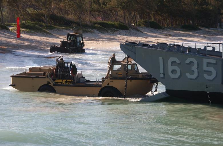 Keywords: US Navy 040720-N-8500S-051 A Lighter Amphibious Resupply Cargo Vessel (LARC) checks the water level prior to disembarking members of 3rd Battalion, 3rd Marine Regiment, from a Landing Craft Utility (LCU) assigned to the Surf Ri.jpg en Bellows Air Force Base Hawaii July 20 2004 - A Lighter Amphibious Resupply Cargo Vessel LARC checks the water level prior to disembarking members of 3rd Battalion 3rd Marine Regiment from a Landing Craft Utility LCU assigned to the Surf Riders of Assault Craft Unit ONE ACU-1 ACU-1 is attached to the amphibious assault ship USS Tarawa LHA 1 who are all participating in exercise Rim of the Pacific RIMPAC 2004 RIMPAC is the largest international maritime exercise in the waters around the Hawaiian Islands This years exercise includes seven participating nations; Australia Canada Chile Japan South Korea the United Kingdom and the United States RIMPAC is intended to enhance the tactical proficiency of participating units in a wide array of combined operations at sea while enhancing stability in the Pacific Rim region U S Navy photo by Photographer's Mate 3rd Class Paula J Sato RELEASED For more information go to <a href http //www cpf navy mil/RIMPAC2004 Target _BLANK >http //www cpf navy mil/RIMPAC2004</a>/ 2004-07-20 http //www navy mil/view_image asp id 16610 U S Navy photo by Photographer's Mate 3rd Class Paula J Sato PD-USGov-Military-Navy 3d Bn 3d Mar 2004 RIMPAC RIMPAC 2004 LARC-V LCU 1635 ship 1968 |