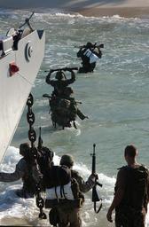 Keywords: US Navy 040720-N-8500S-058 Members of 3rd Battalion, 3rd Marine Regiment, Combat Assault Company advance to offensive positions during exercise Rim of the Pacific (RIMPAC) 2004.jpg en Bellows Air Force Base Hawaii July 20 2004 - Members of 3rd Battalion 3rd Marine Regiment Combat Assault Company advance to offensive positions during exercise Rim of the Pacific RIMPAC 2004 RIMPAC is the largest international maritime exercise in the waters around the Hawaiian Islands This years exercise includes seven participating nations; Australia Canada Chile Japan South Korea the United Kingdom and the United States RIMPAC is intended to enhance the tactical proficiency of participating units in a wide array of combined operations at sea while enhancing stability in the Pacific Rim region U S Navy photo by Photographer's Mate 3rd Class Paula J Sato RELEASED For more information go to <a href http //www cpf navy mil/RIMPAC2004 Target _BLANK >http //www cpf navy mil/RIMPAC2004</a>/ 2004-07-20 http //www navy mil/view_image asp id 16613 U S Navy photo by Photographer's Mate 3rd Class Paula J Sato PD-USGov-Military-Navy 3d Bn 3d Mar 2004 RIMPAC Males with M16 rifle |