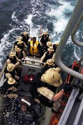 Keywords: US Navy 040720-N-1464F-003 A boarding team from USS Thomas S. Gates (CG 51) climbs aboard a Rigid Inflatable Boat (RIB) to conduct a boarding of a foreign amphibious ship during Pacific Phase exercises of UNITAS 45-04.jpg en Pacific Ocean July 20 2004 - A boarding team from USS Thomas S Gates CG 51 climbs aboard a Rigid Inflatable Boat RIB to conduct a boarding of a foreign amphibious ship during Pacific Phase exercises of UNITAS 45-04 Naval forces from Argentina Chile Colombia Ecuador Peru and observers from Mexico and Canada are participating in UNITAS 45-04 UNITAS is the premier naval exercise in the region conducted under the direction of Commander U S Naval Forces Southern Command and hosted this year by the Peruvian Navy UNITAS is designed to develop interoperability among the participating navies while increasing readiness and providing the training in a high-tech environment U S Navy photo by Chief Journalist Dave Fliesen RELEASED 2004-07-20 040720-N-1464F-003 Navy http //www navy mil/view_image asp id 16710 U S Navy photo by Chief Journalist Dave Fliesen PD-USGov-Military-Navy USS Thomas S Gates CG-51 |