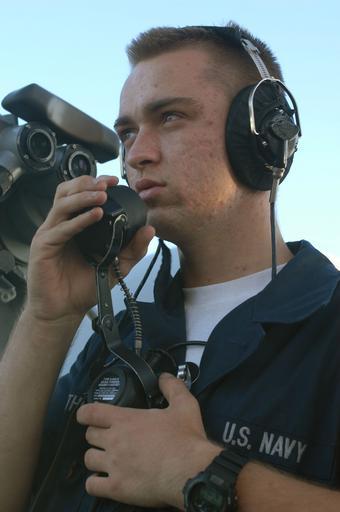 Keywords: US Navy 040730-N-0717N-068 Seaman Andras Mathe, of Easton, Conn., stands a forward lookout watch from the signal bridge of the aircraft carrier USS Kitty Hawk (CV 63).jpg en Pacific Ocean July 30 2004 - Seaman Andras Mathe of Easton Conn stands a forward lookout watch from the signal bridge of the aircraft carrier USS Kitty Hawk CV 63 The signal bridge is responsible for using flag hoists yardarm blinkers and semaphore to communicate between ships Kitty Hawk is one of seven carrier strike groups CSGs involved in Summer Pulse 2004 which is the deployment of seven carrier strike groups CSGs demonstrating the ability of the Navy to provide credible combat capability across the globe in five theaters with other U S allied and coalition military forces Summer Pulse is the Navy s first deployment under its new Fleet Response Plan FRP U S Navy photo by Photographer's Mate Airman Justin Novack RELEASED For more information go to <a href http //www cffc navy mil/summerpulse04 htm Target _BLANK >www cffc navy mil/summerpulse04 htm</a> 2004-07-30 040730-N-0717N-068 Navy http //www navy mil/view_image asp id 16776 U S Navy photo by Photographer's Mate Airman Justin Novack PD-USGov-Military-Navy Aboard USS Kitty Hawk CV-63