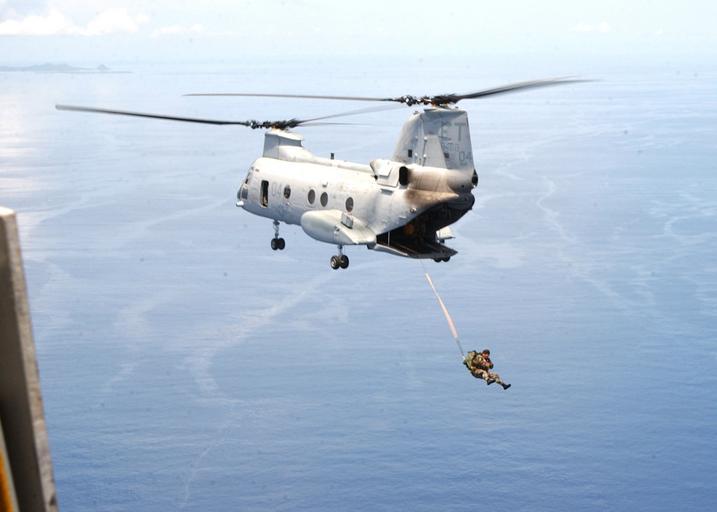 Keywords: US Navy 040804-N-7512V-133 A U.S. Army soldier assigned to the First Battalion of First Special Operations Airborne Unit, Torii Station, Okinawa, Japan, performs a static jump.jpg en Okinawa Japan Aug 4 2004 A soldier assigned to the First Battalion of First Special Operations Airborne Unit Torii Station Okinawa Japan performs a static jump out of a CH-46E Sea Knight helicopter assigned to the Flying Tigers of Marine Helicopter Medium Squadron Two Six Two HMM-262 HMM-262 is assigned to Marine Corps Air Station Futenma U S Navy photo by Photographer s Mate 3rd Class Kaitlyn Rae Vargo RELEASED 2004-08-04 040804-N-7512V-133 Navy http //www navy mil/view_image asp id 16852 U S Navy photo by Photographer s Mate 3rd Class Kaitlyn Rae Vargo PD-USGov-Military-Navy Images from US Navy location Okinawa Japan Static line parachuting CH-46 Sea Knight People jumping out of helicopters United States Army Special Operations Command |