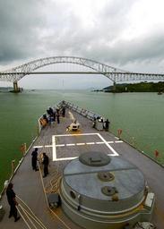 Keywords: US Navy 040810-N-7631T-004 The guided missile frigate USS John L. Hall (FFG 32) departs for sea in preparation for PANAMAX 2004.jpg en Gulf of Panama Aug 10 2004 The guided missile frigate USS John L Hall FFG 32 departs for sea in preparation for PANAMAX 2004 Naval forces from eight countries are participating in PANAMAX 2004 a naval exercise designed to build up a coalition response to security threats against the Panama Canal PANAMAX is conducted under the direction of Commander Naval Forces Southern Command and involves the identification monitoring and interdiction of vessels posing a simulated terrorist threat to the Canal The multinational force includes surface and air assets from Argentina Colombia Chile Dominican Republic Honduras Panama Peru and the United States operating in the north and south approaches to the Canal PANAMAX s realistic scenario develops not only interoperability among naval forces but also joint and inter-agency interoperability as the naval forces work together with other services and agencies of Panama to ensure the safety of the Canal and to protect freedom of navigation U S Navy photo by Photographer's Mate 2nd Class Kevin R Tidwell RELEASED 2004-08-10 040810-N-7631T-004 Navy http //www navy mil/view_image asp id 17063 U S Navy photo by Photographer's Mate 2nd Class Kevin R Tidwell PD-USGov-Military-Navy Bridge of the Americas Panama PANAMAX 2004 USS John L Hall FFG-32 |