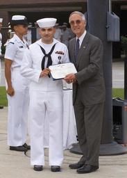 | Keywords: US Navy 040811-N-0000X-002 Secretary of the Navy, Gordon R. England presents the Navy Cross to Hospitalman Apprentice Luis E. Fonseca, Jr., for heroism during the battle of An Nasiriyah, Iraq, in March 2003.jpg en Camp Lejeune N C Aug 11 2004 Secretary of the Navy Gordon R England presents the Navy Cross to Hospitalman Apprentice Luis E Fonseca Jr for heroism during the battle of An Nasiriyah Iraq in March 2003 Under attack and without concern for his own safety Hospitalman Apprentice Fonseca braved small arms machine gun and intense rocket-propelled grenade fire to evacuate wounded Marines from a burning amphibious assault vehicle He stabilized two casualties with lower limb amputations with tourniquets and administered morphine while organizing the evacuation of four wounded Marines again exposing himself to enemy fire to treat wounded Marines along an offensive perimeter His timely and effective care saved the lives of numerous casualties U S Navy photo by Hospital Corpsman 2nd Class Wayne Nelms RELEASED 2004-08-11 040811-N-0000X-002 Navy http //www navy mil/view_image asp id 16957 U S Navy photo by Hospital Corpsman 2nd Class Wayne Nelms PD-USGov-Military-Navy Marine Corps Base Camp Lejeune |