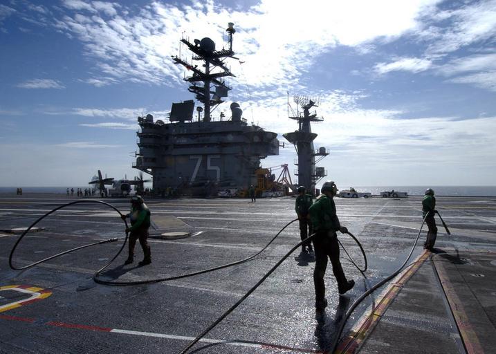 Keywords: US Navy 040908-N-4308O-009 Sailors assigned to the V-2 Division reconnect the number three arresting wire during a break in flight operations.jpg en Atlantic Ocean Sept 8 2004 - Sailors assigned to the V-2 Division reconnect the number three arresting wire during a break in flight operations aboard the Nimitz-class aircraft carrier USS Harry S Truman CVN 75 Truman and embarked Carrier Air Wing Eight CVW-8 are currently participating in carrier qualifications off the East Coast of the United States in preparation for a scheduled deployment U S Navy photo by Photographer's Mate Airman Ryan T O'Connor RELEASED 2004-09-08 040908-N-4308O-009 Navy http //www navy mil/view_image asp id 17593 U S Navy photo by Photographer's Mate Airman Ryan T O'Connor PD-USGov-Military-Navy Aboard USS Harry S Truman CVN-75 |