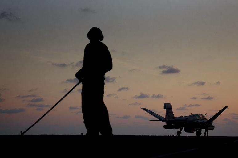 Keywords: US Navy 040909-N-6213R-021 An Aviation Boatswain's Mate guides an arresting wire as it is retracted back into position following the successful arrested landing of an EA-6B Prowler.jpg en South China Sea Sept 9 2004 - An Aviation Boatswain's Mate guides an arresting wire as it is retracted back into position following the successful arrested landing of an EA-6B Prowler assigned to the Cougars of Tactical Electronic Warfare Squadron One Three Nine VAQ-139 aboard USS John C Stennis CVN 74 Stennis and embarked Carrier Air Wing Fourteen CVW-14 are currently participating in a scheduled deployment to the Western Pacific Ocean U S Navy photo by Photographer's Mate 3rd Class Mark J Rebilas RELEASED 2004-09-09 040909-N-6213R-021 Navy http //www navy mil/view_image asp id 17572 U S Navy photo by Photographer's Mate 3rd Class Mark J Rebilas PD-USGov-Military-Navy Grumman EA-6 Prowler Aviation Boatswain's Mates Aboard USS John C Stennis CVN-74 Electronic Attack Squadron 139 United States Navy Photographs by Mark J Rebilas |