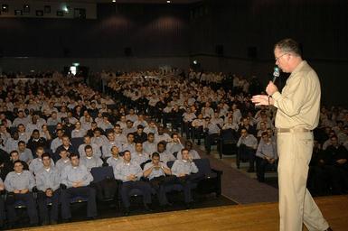 Keywords: US Navy 041013-N-5464G-003 Commanding Officer, USS Kitty Hawk (CV 63), Capt. Thomas A. Parker, hosts a Captain's Call on the U.S. Navy's 229th birthday to speak with junior Sailors stationed aboard the conventionally-powered ai.jpg en Yokosuka Japan Oct 13 2004 - Commanding Officer USS Kitty Hawk CV 63 Capt Thomas A Parker hosts a Captain's Call on the U S Navy's 229th birthday to speak with junior Sailors stationed aboard the conventionally-powered aircraft carrier Capt Parker addressed the crew on valuable information on a variety of programs pertaining to them such as Perform to Serve Exceptional Sailor Program and also addressed questions and concerns from the crew Currently in port Yokosuka Japan Kitty Hawk demonstrates power projection and sea control as the U S Navy's only permanently forward-deployed aircraft carrier operating from Yokosuka Japan U S Navy photo by Photographer's Mate Airman Theron J Godbold RELEASED 2004-10-13 041013-N-5464G-003 Navy http //www navy mil/view_image asp id 18186 U S Navy photo by Photographer's Mate Airman Theron J Godbold PD-USGov-Military-Navy United States Fleet Activities Yokosuka Aboard USS Kitty Hawk CV-63 |