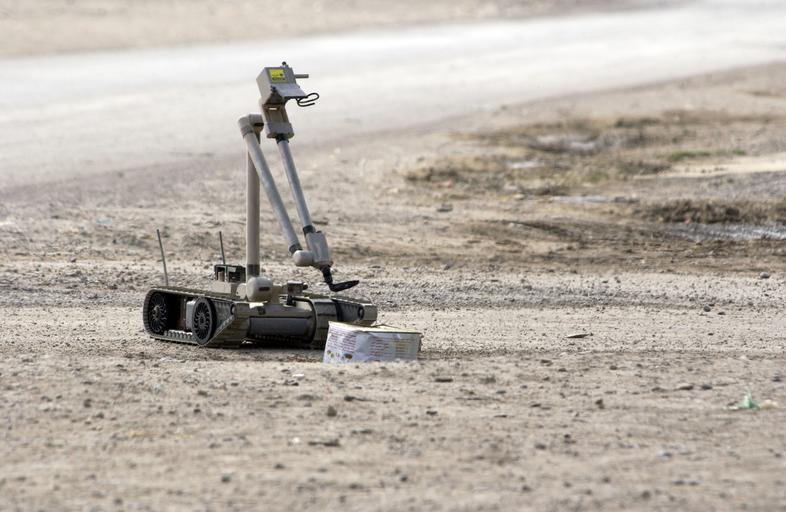 Keywords: US Navy 041103-N-4614W-033 A U.S. Army explosive ordnance disposal (EOD) robot, i-Robot, pulls the wire of an alleged improvised explosive device (IED), found by the Iraqi Police.jpg en Samarra Iraq Nov 3 2004 - A U S Army explosive ordnance disposal EOD robot i-Robot pulls the wire of an alleged improvised explosive device IED found by the Iraqi Police Controlled by a team of Soldiers assigned to 731st Ordnance Company of Wright-Patterson Air Force Base Ohio i-Robot safely surveys the device at a safe distance with its two on-board cameras and mechanical arm U S Navy photo by Journalist 1st Class Jeremy L Wood RELEASED 2004-11-03 041103-N-4614W-033 Navy http //www navy mil/view_image asp id 18970 U S Navy photo by Journalist 1st Class Jeremy L Wood US Navy 041103-N-4614W-033 A U S Army explosive ordnance disposal EOD robot i-Robot pulls the wire of an alleged improvised explosive device IED found by the Iraqi Police crop jpg PD-USGov-Military-Navy Images from US Navy location Samarra Iraq United States Navy Explosive Ordnance Disposal EOD robots Improvised explosive devices