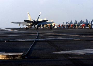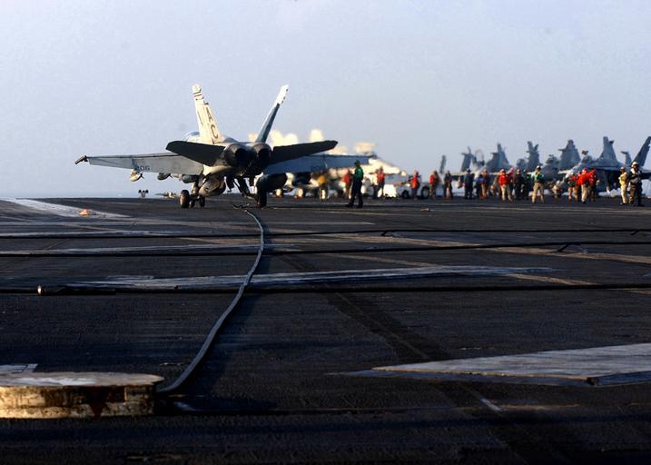 Keywords: US Navy 041226-N-2984R-084 An F-A-18A- Hornet assigned to Marine Fighter Attack Squadron One One Five (VMFA-115) Silver Eagles catches one of the four arresting wires during aircraft recovery aboard USS Harry S. Truman (CVN 75).jpg en Persian Gulf Dec 26 2004 - An F/A-18A+ Hornet assigned to Marine Fighter Attack Squadron One One Five VMFA-115 Silver Eagles catches one of the four arresting wires during aircraft recovery aboard USS Harry S Truman CVN 75 Carrier Air Wing CVW3 3 is providing close air support and conducting intelligence surveillance and reconnaissance missions over Iraq The USS Harry S Truman Strike Group and CVW-3 are on a regularly scheduled deployment in support of the Global War on Terrorism U S Navy photo by Photographer s Mate Airman Apprentice Ricardo J Reyes RELEASED 2004-12-26 041226-N-2984R-084 Navy http //www navy mil/view_image asp id 19884 U S Navy photo PD-USGov-Military-Navy Aboard USS Harry S Truman CVN-75 |