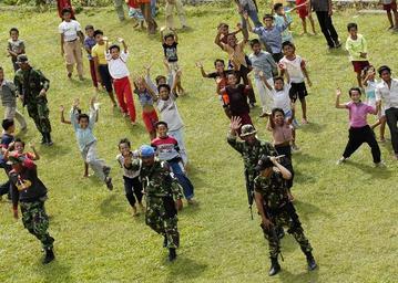 | Keywords: US Navy 050106-N-4166B-378 Children in Lamno, Sumatra, Indonesia are all smiles after receiving food and water flown-in by U.S. Navy and foreign military helicopters.jpg en Lamno Sumatra Indonesia Jan 6 2005 - Children in Lamno Sumatra Indonesia are all smiles after receiving food and water flown-in by U S Navy and foreign military helicopters Helicopters assigned to Carrier Air Wing Two CVW-2 and Sailors from Abraham Lincoln are supporting Operation Unified Assistance the humanitarian operation effort in the wake of the Tsunami that struck South East Asia The Abraham Lincoln Carrier Strike Group is currently operating in the Indian Ocean off the waters of Indonesia and Thailand U S Navy photo by Photographer s Mate Airman Jordon R Beesley RELEASED 2005-01-06 050106-N-4166B-378 Navy http //www navy mil/view_image asp id 20299 U S Navy photo by Photographer s Mate Airman Jordon R Beesley PD-USGov-Military-Navy Personality rights Taken with Nikon D70 Images from US Navy location Aceh Indonesia Children of Aceh Military people with children Smiling children Hand waving |